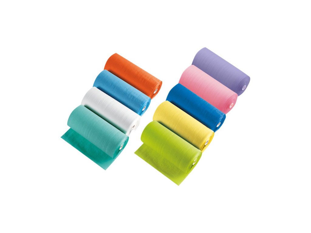ROUŠKY-BRYNDÁKY rolované o rozměru 61 x 53cm, pacientské roušky Monoart mají polyetylenovou vrstvu, s perforací. Různé barvy - tmavě modré, zelené, fialové, žluté, oranžové a limetkové. Balení: 1 role (80ks v roli)